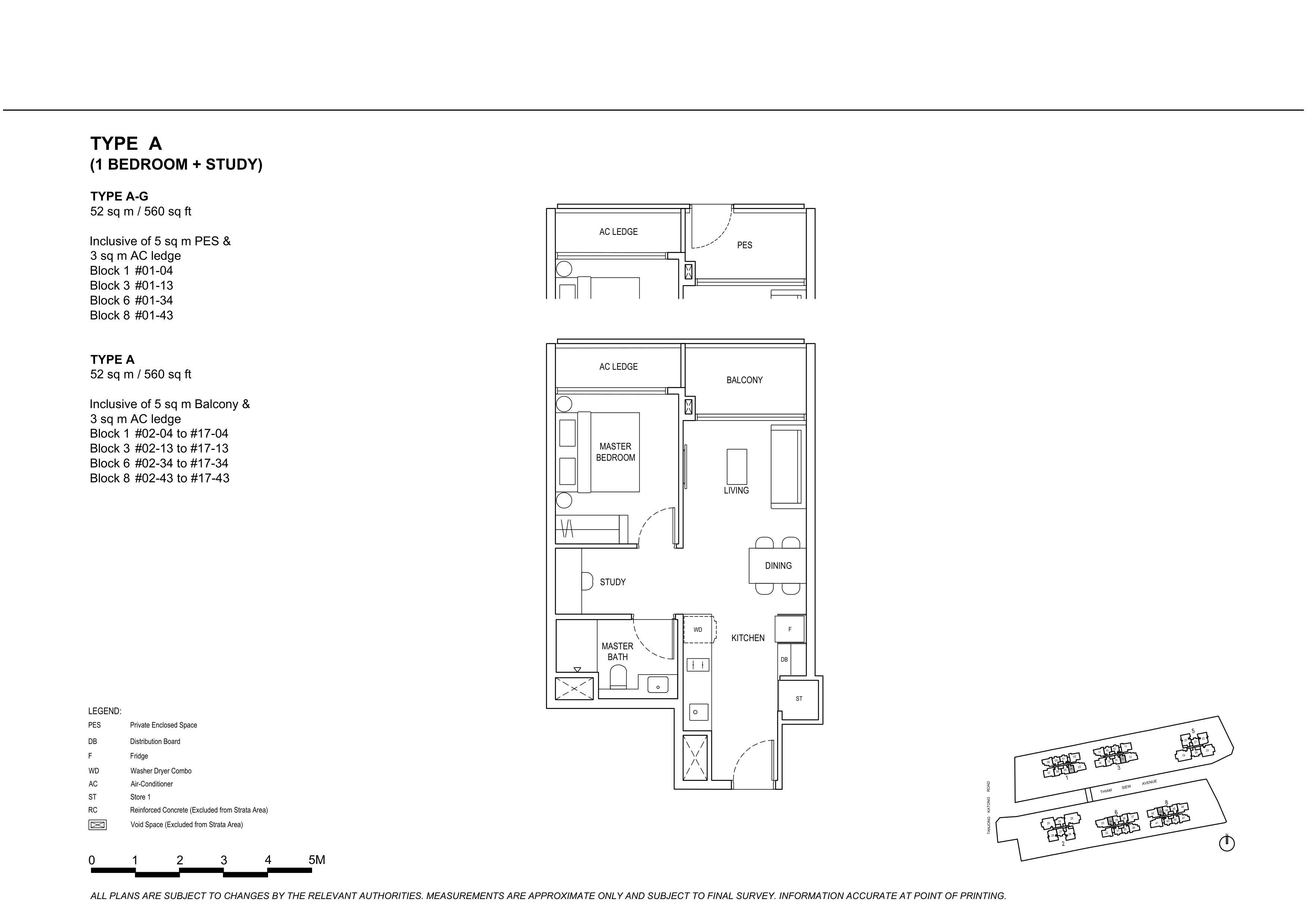 | 1 Bedroom + Study | 68 | 560 | |