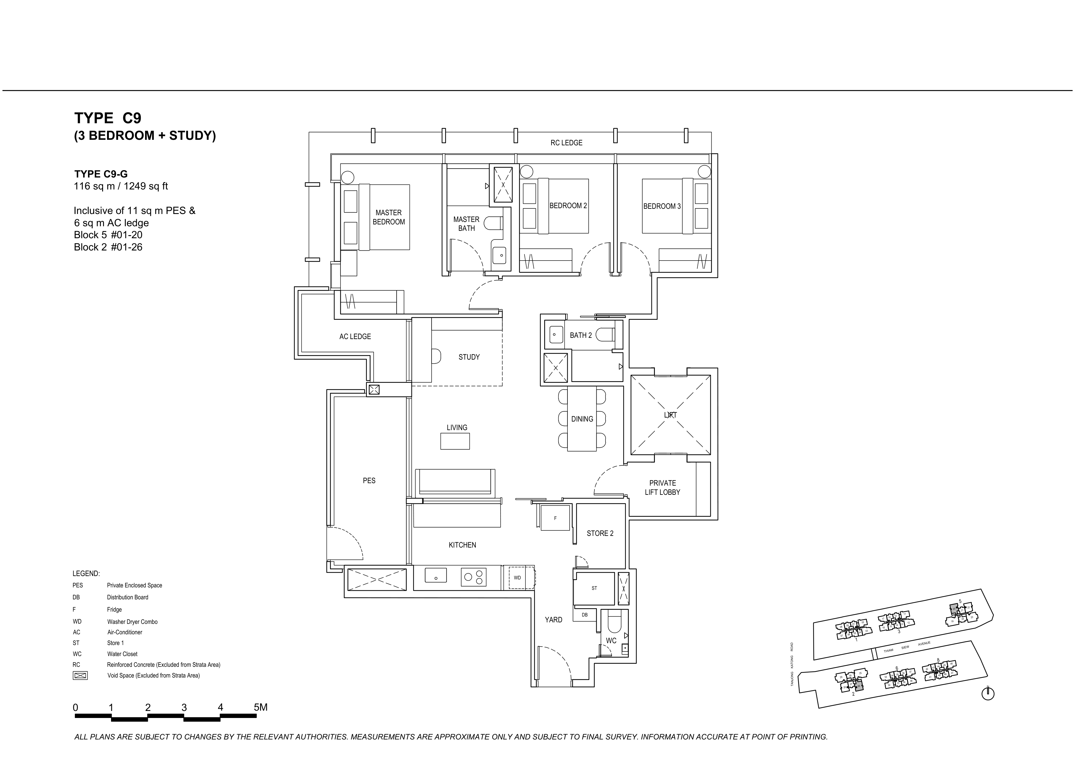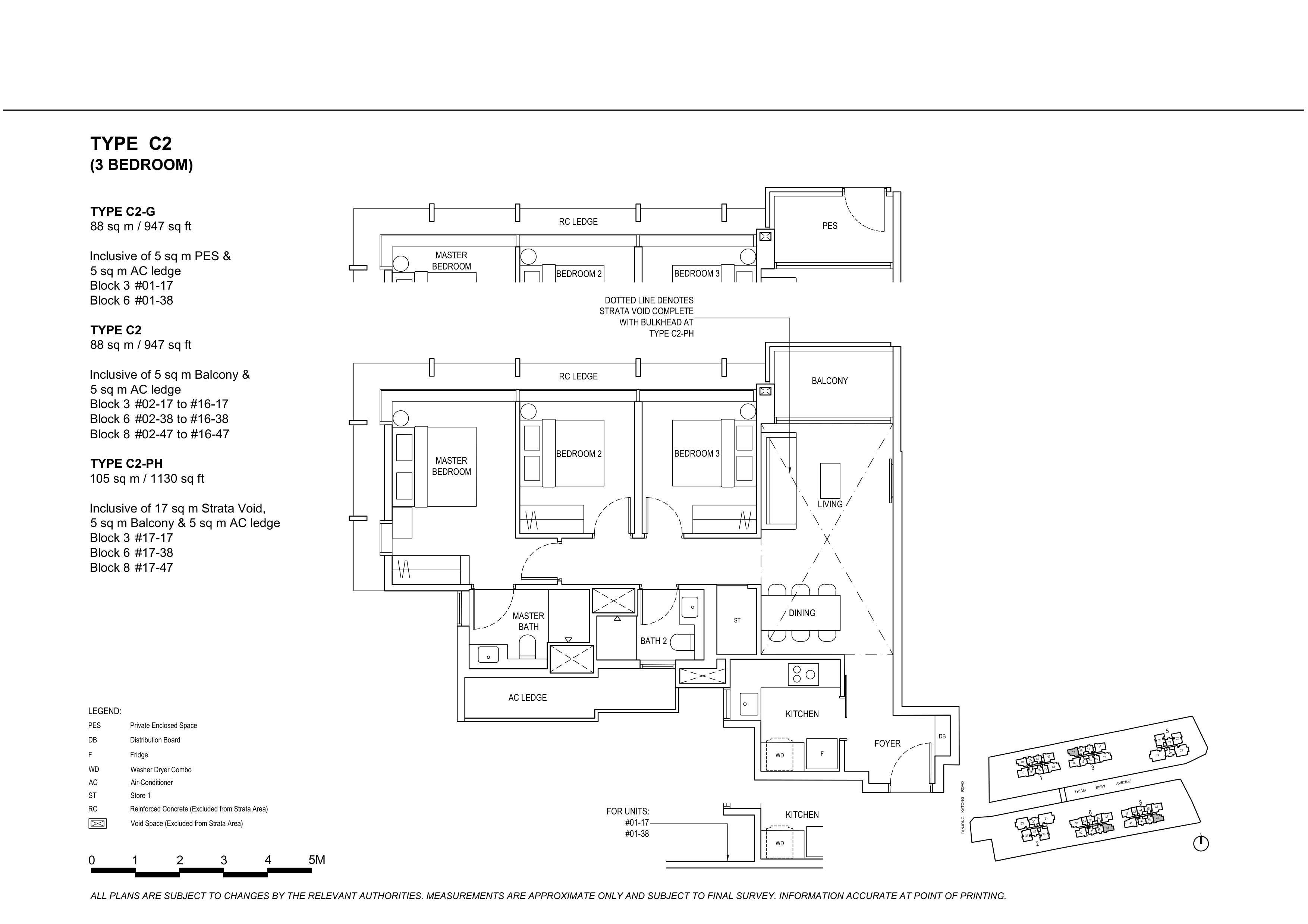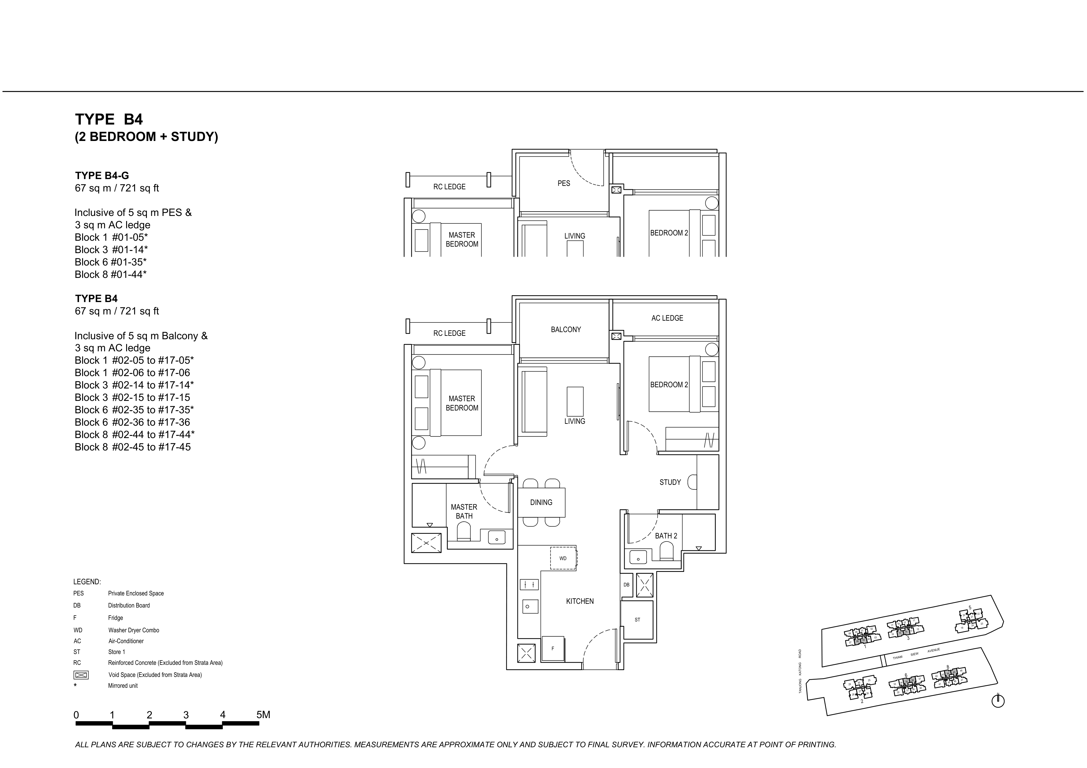 | 2 Bedroom + Study | 136 | 700 - 721 | |