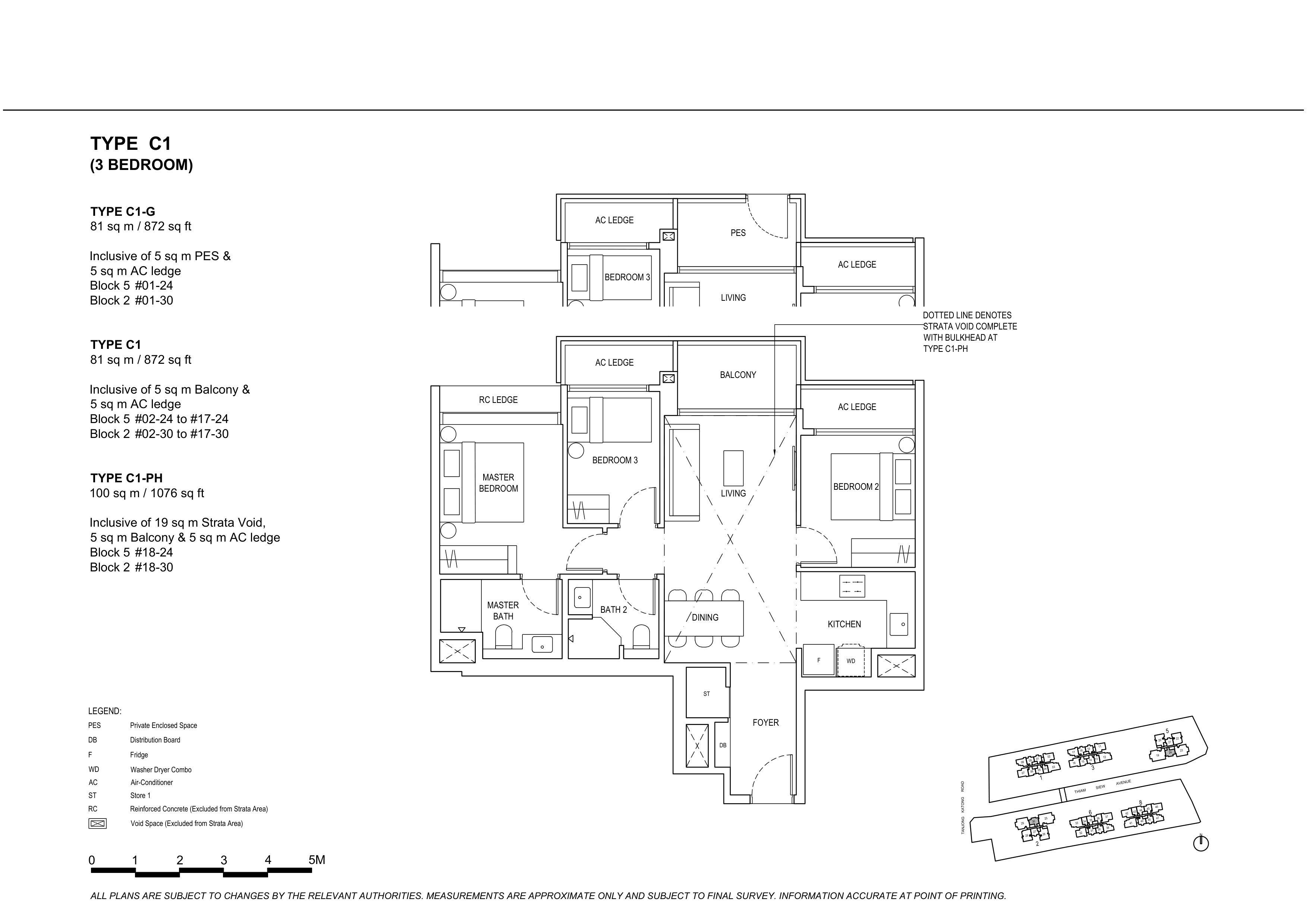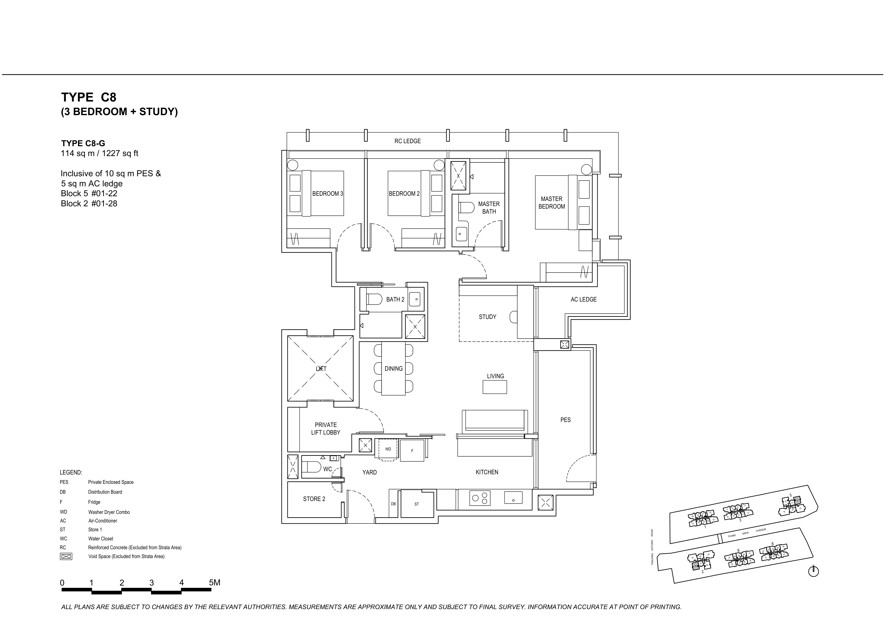 | 3 Bedroom + Study | 72 | 1,227 - 1,464 | |